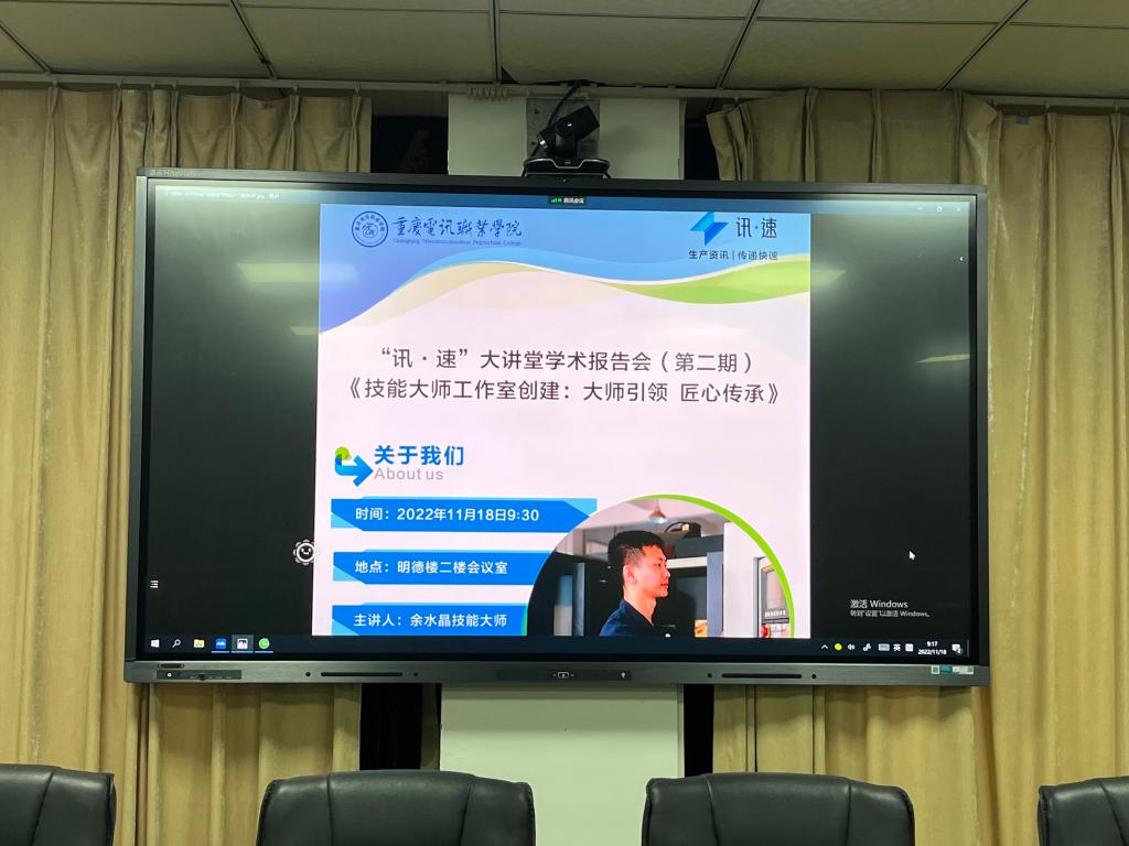11月18日上午,重庆电讯职业学院在明德楼二楼会议室通过腾讯会议邀请中国技术指导专家、南海工匠余水晶老师作学校技能大师工作室建设指导交流。学校校长栗玉侠、分管“双高”建设、教学副校长,相关部门、二级学院(部)负责人参加会议。
