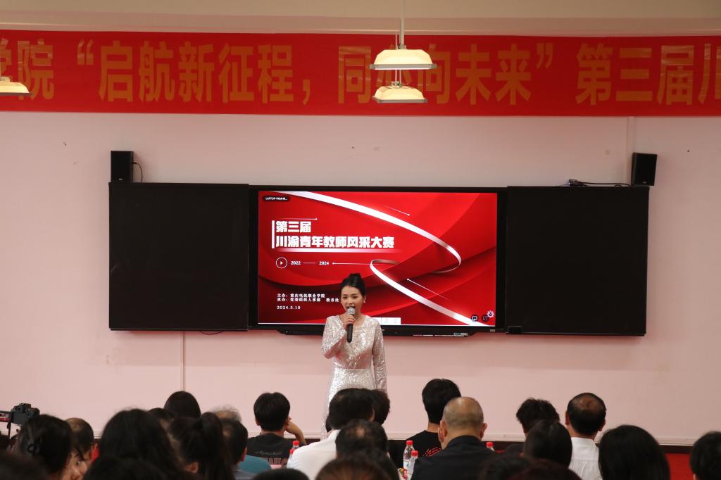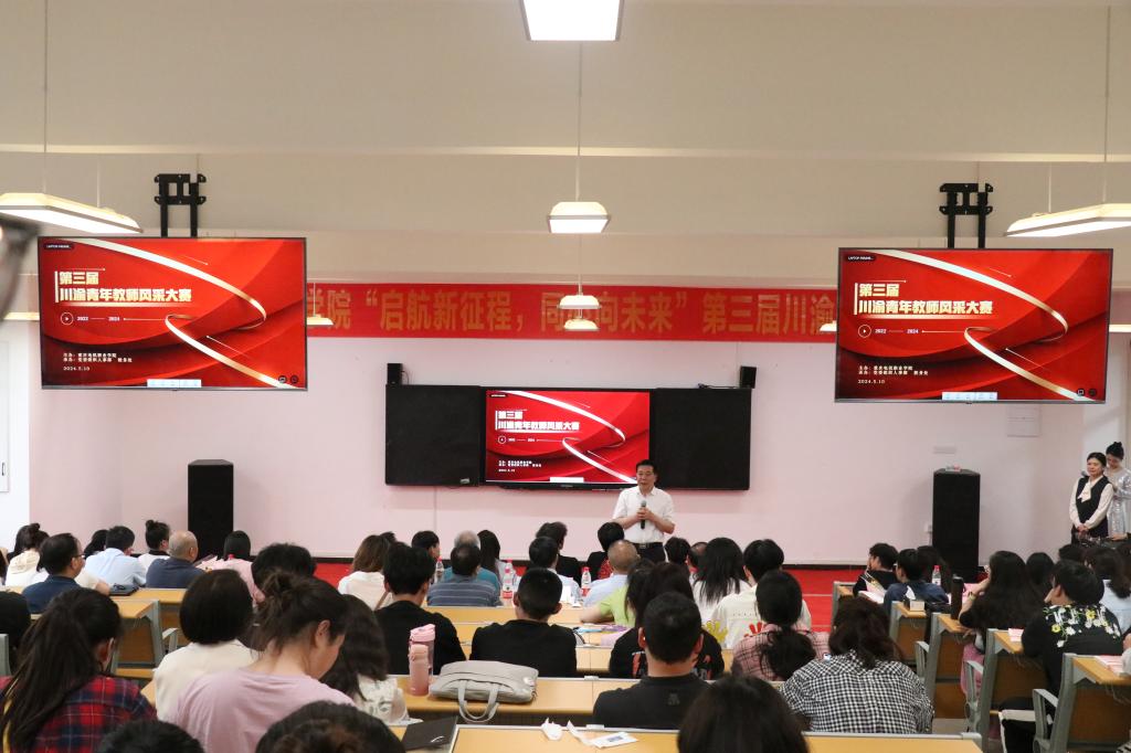 为切实加强师德师风建设,弘扬尊师重教社会风尚,推动成渝地区双城经济圈教育协同发展,彰显青年教师“为党育人,为国育才”的使命担当和青春风采,5月10日,学校在7号楼阶二教室举办了“启航新征程,同心向未来”第三届川渝青年教师风采大赛校内选拔赛,来自各二级学院(部)的优秀青年教师代表参加比赛。学校栗玉侠校长、王东鸣副书记、郭万斌常务副校长、杨治明副校长等校领导,机关处室、院部负责人及各二级学院部优秀教师、学生代表出席了活动。