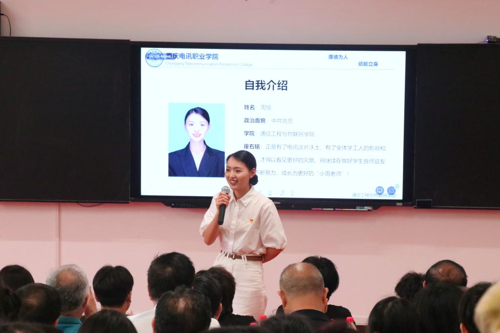 经过现场评委综合评定,基础部支叔尔老师、商务管理学院郭杰老师荣获一等奖,智慧城市建设学院朱莉花老师、汽车与智能制造工程学院瞿乐老师、基础部罗旭老师荣获二等奖,大数据与数字媒体学院佟海洋教师、李前慧老师,商务管理学院李春燕老师,汽车与智能制造工程学院胡登兴老师荣获三等奖,智慧城市建设学院黄歆露老师、通信工程与物联网学院周旭、黄诒军老师荣获优胜奖。获得一等奖的教师将代表学校参加5月下旬由重庆市教育委员会、四川省教育厅主办的第三届川渝青年教师风采大赛复赛。