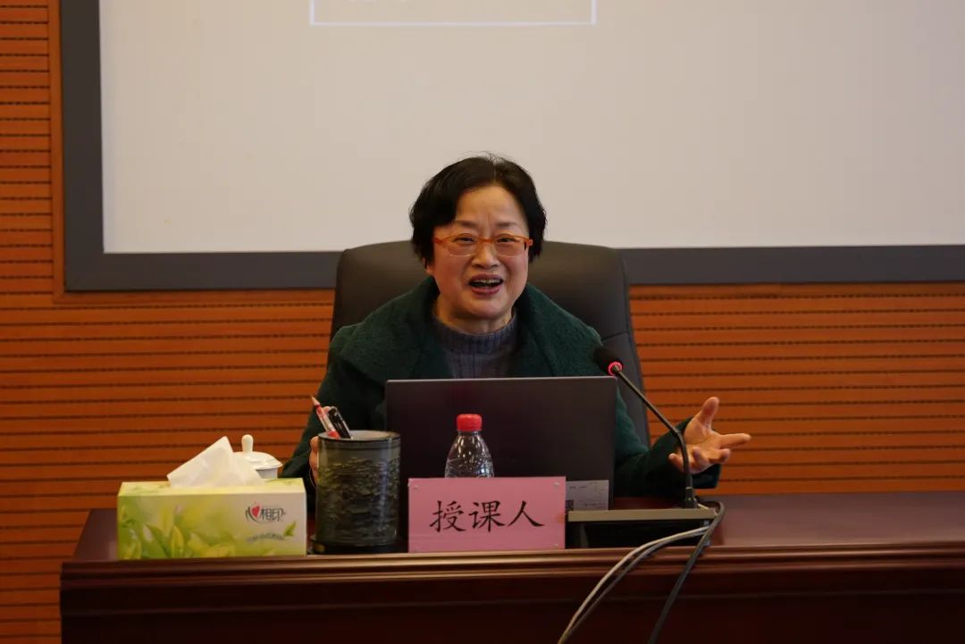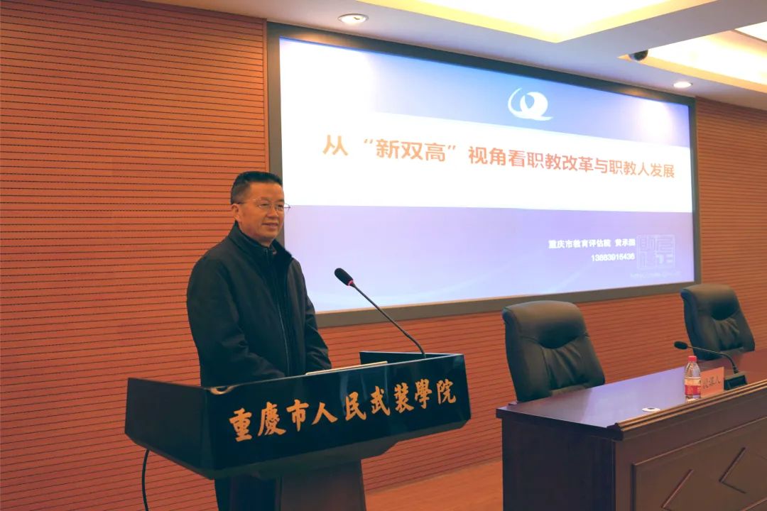 △市教育评估院职业与成人教育评估所所长黄承国以《新时代高职教育高质量发展主要关注》为题为教师们进行职业教育发展和青年教师发展的精彩解读