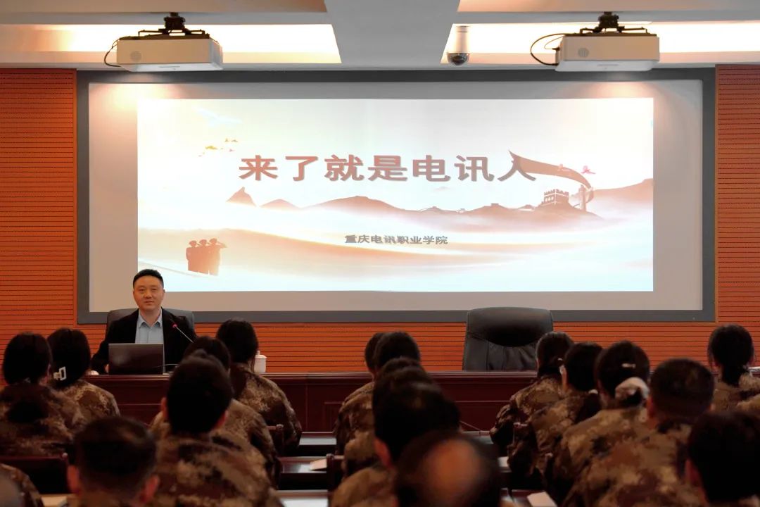 △学校党委书记兰海涛以《来了就是电讯人》为主题寄语新进教师潜心教书育人、弘扬正能量,在教师的征程中走好第一步、走好每一步