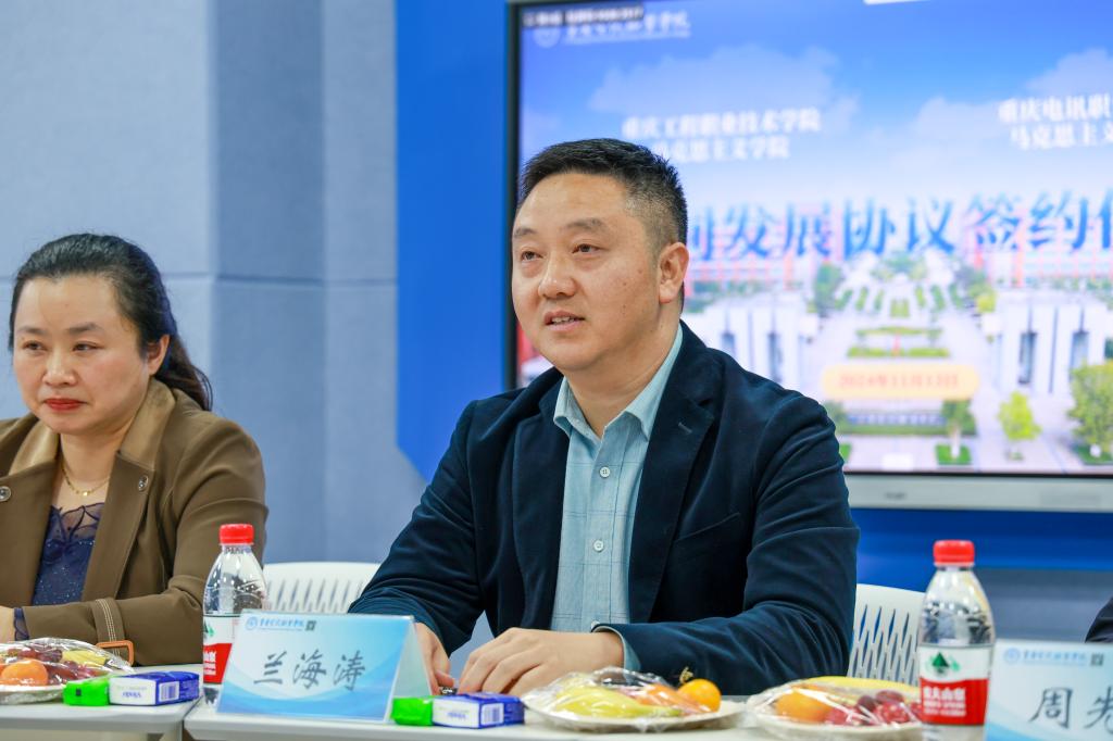11月13日,重庆工程职业技术学院马克思主义学院(以下简称工程职院马院)院长张洪冲带领学校骨干思政课教师团队莅临学校,与我校马院教师开展新时代高校思想政治理论课建设交流座谈会并签署协同发展协议。