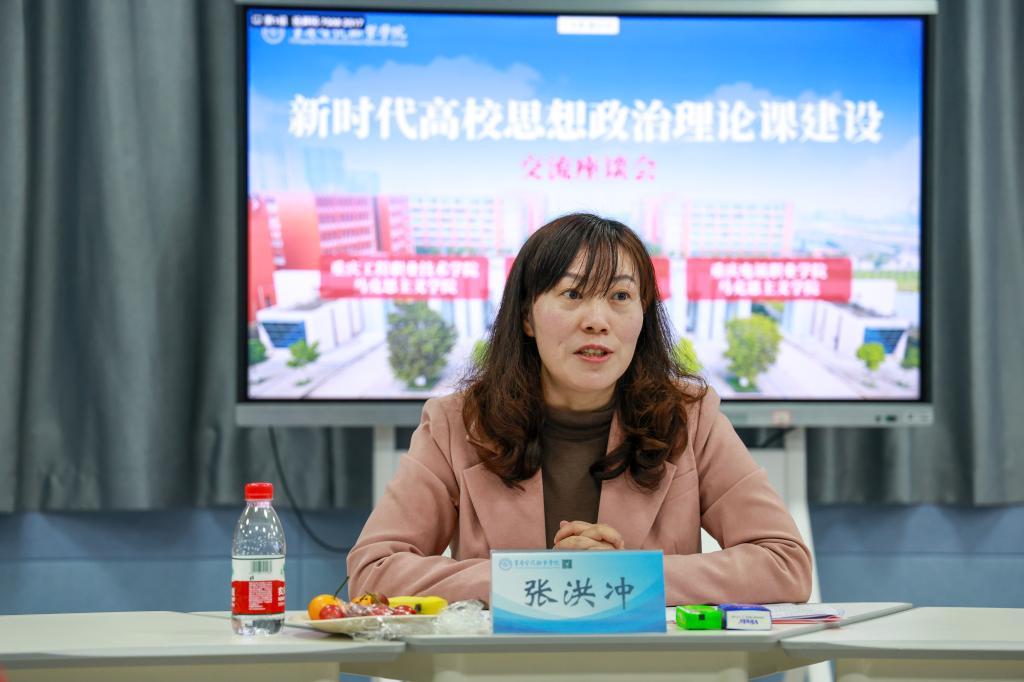 随后,张洪冲院长介绍了工程职院马院基本情况,着重从学院制度、课程开设、社会实践等方面进行交流分享。她表示,两校之间一直保持着良好的沟通和交流,希望在今后在推动思政课建设内涵式发展,提高人才培养质量上携手共进。