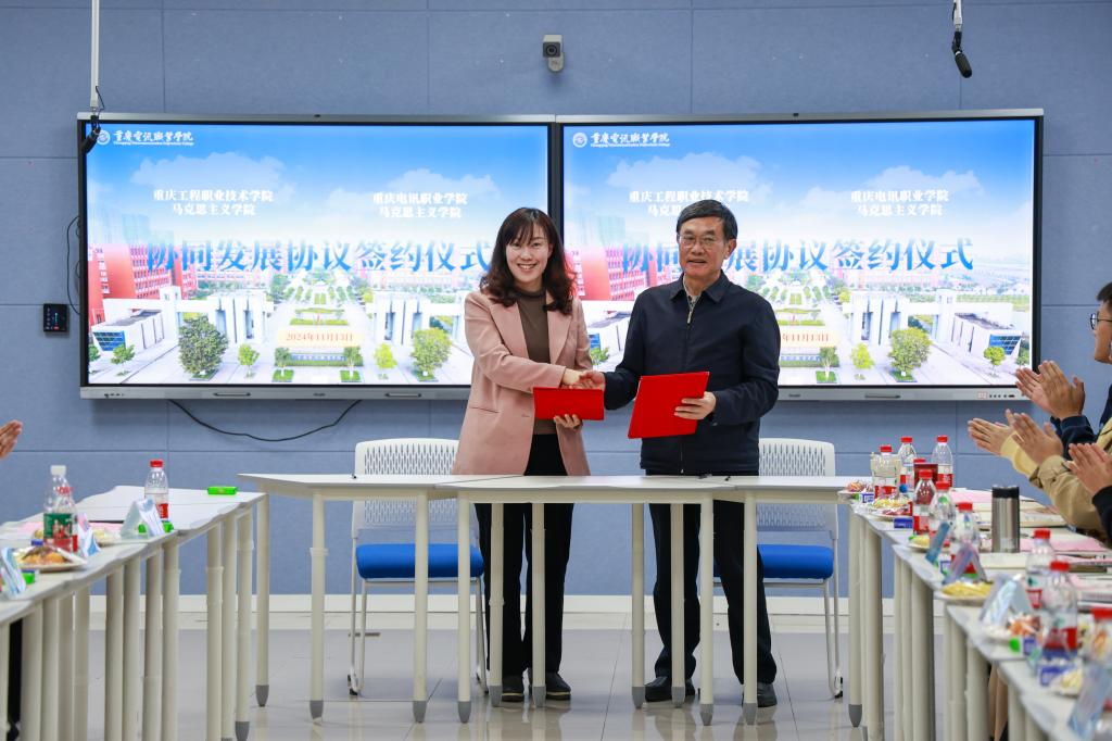 随后,两校马院共同签订了“协同发展”合作协议。双方将依托“重庆市大中小学思政课一体化建设”共同体项目,相互助力,协同发展,推动两校在课程建设、教研教改、科学研究等方面的深度交流。